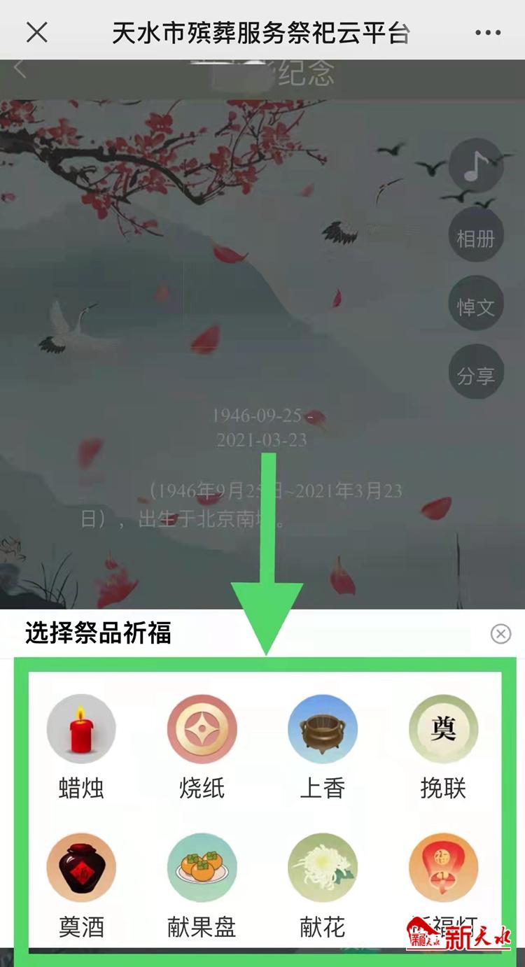今年清明期间,天水市暂停所有现场和集中祭祀活动,倡议广大市民群众积极培育文明、绿色、简约的现代祭祀新风,可通过“天水市殡葬服务‘云祭祀’平台”开展网上祭祀,寄托哀思。