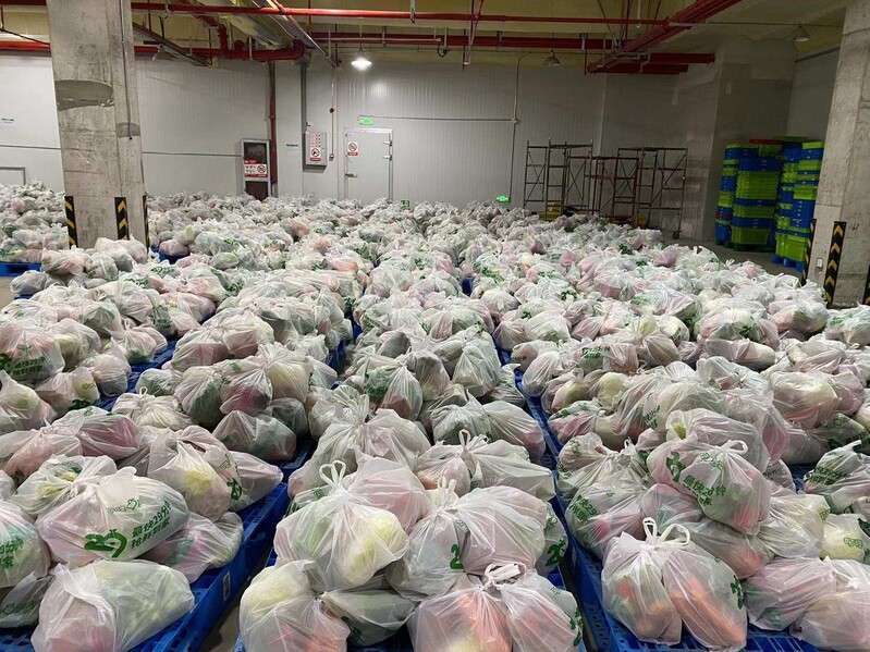 叮咚买菜位于浙江的两个城市分选中心准备好5.1万份保供物资包。