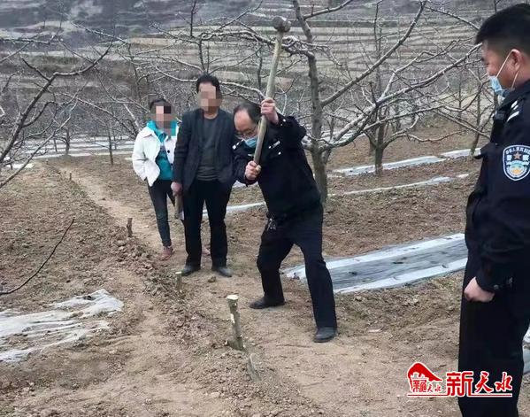 新天水讯【记者蔚军平】叔侄两家人因为果园地埂界限不清积怨已久,经常发生口角,甘谷县公安局磐安派出所民警得知此事后理清矛盾原委耐心调解,并拉尺丈量划界线,圆满解决了纠纷。