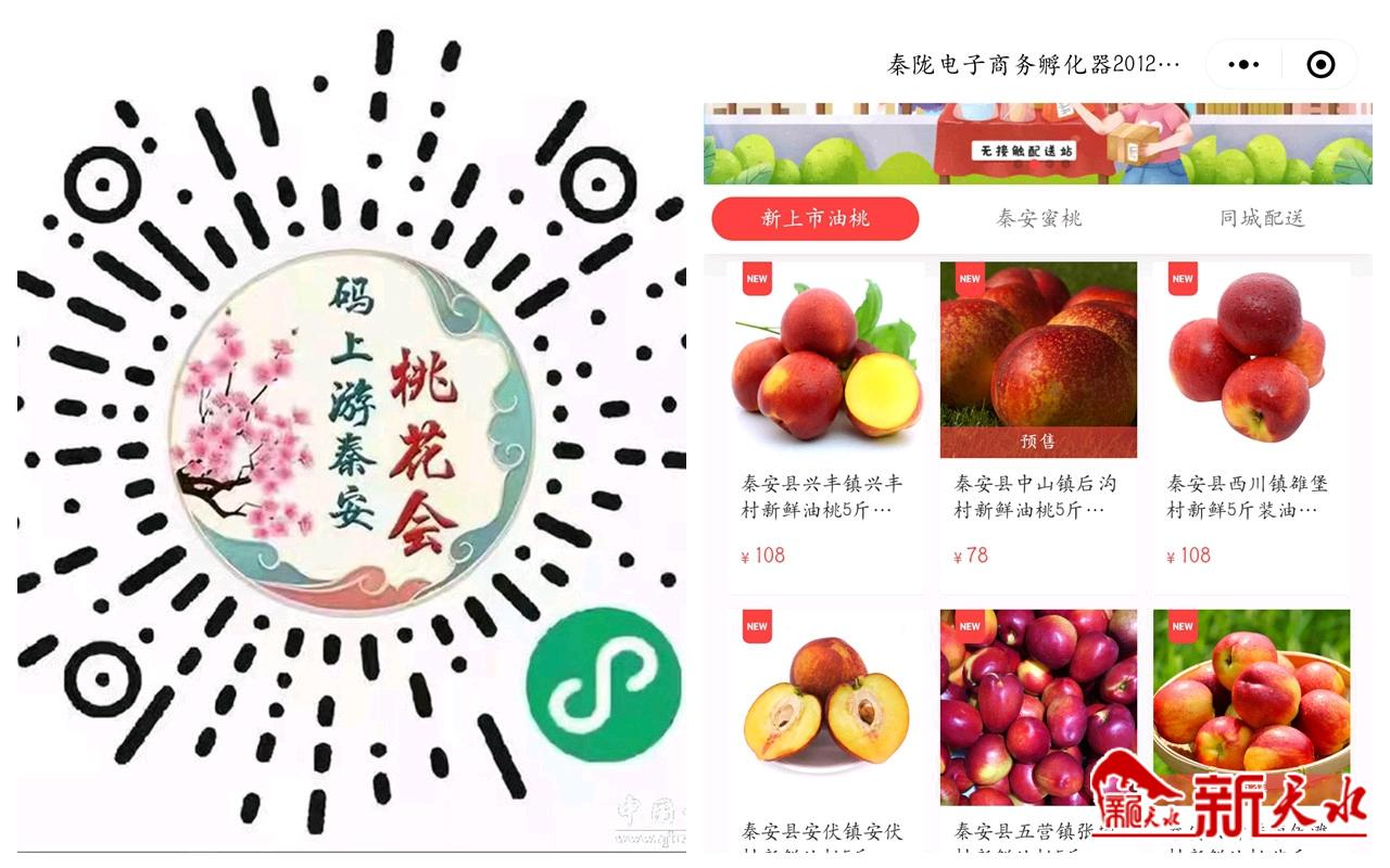 圆通电子商务有限公司总经理姬小兵告诉记者:“针对秦安线上销售果品量大的问题,他们多次协商,物流水果价格由去年的5元/公斤降为今年的2元/公斤,快递价格减少了一半多,为果农和消费者带来了实惠。” 同时,秦安县商务局在官方公众号“智慧秦安”和“秦安县电子商务公共物流服务中心”设置时令蔬菜-电商助农板块,产品供应商涉及8镇9村的农户。广大市民足不出户,即可在手机上完成下单购买,并在第一时间将油桃送至。还可以扫描二维码进入“码上游秦安桃花会”小程序,在“仙桃预售”板块选购油桃。