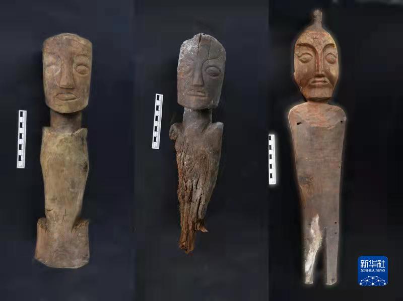 桑达隆果墓地出土的木俑(资料照片)。新华社发