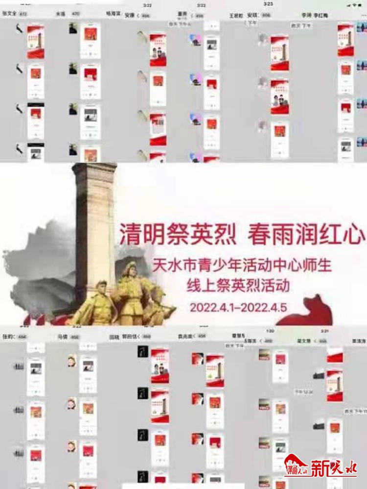 又是一年春草绿,梨花风起正清明。清明,是中华民族缅怀先辈、追思逝者、寄托哀思的传统节日。当前国内新冠肺炎疫情防控形势严峻复杂,为在青少年中深入开展爱国主义和革命红色精神教育,按照疫情防控要求,营造安全、文明、绿色、和谐的祭扫环境,4月1日至5日,天水市青少年活动中心组织全体老师和各专业班级学生,积极参加由甘肃省文明办、甘肃省图书馆联合开展的“清明祭英烈 春雨润红心”线上祭英烈活动,以此来缅怀先烈、致敬英雄。
