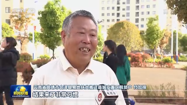 云南省曲靖市会泽县易地扶贫搬迁县城安置区脱贫户付加得:原来担心的是不习惯,住在楼房里面没得去处,结果来了非常习惯,我们每天下来锻炼身体,和邻里之间谈谈话,交了很多新朋友。