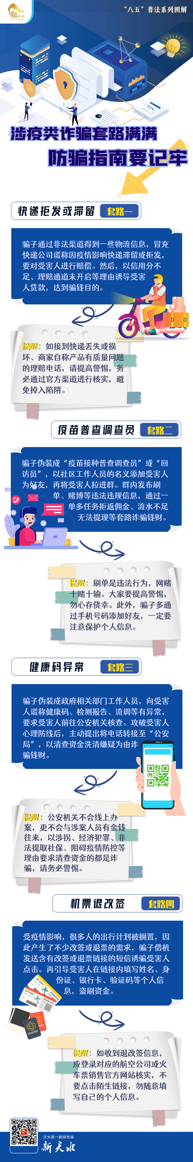 “八五”普法图解 | 涉疫类诈骗套路满满 防骗指南要记牢