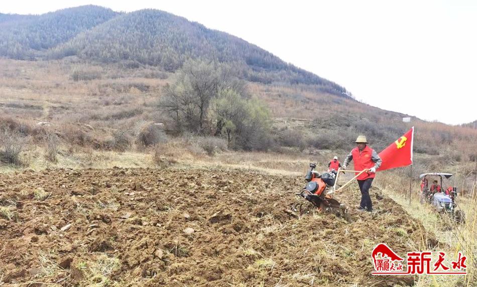4月6日,在武山县龙台镇青山村一处撂荒地复耕复种现场,该村党支部书记史村保正开着耕地机在荒地里作业,随着齿轮翻滚,一排排泥土被翻耕出来,现代农业发展已见雏形。