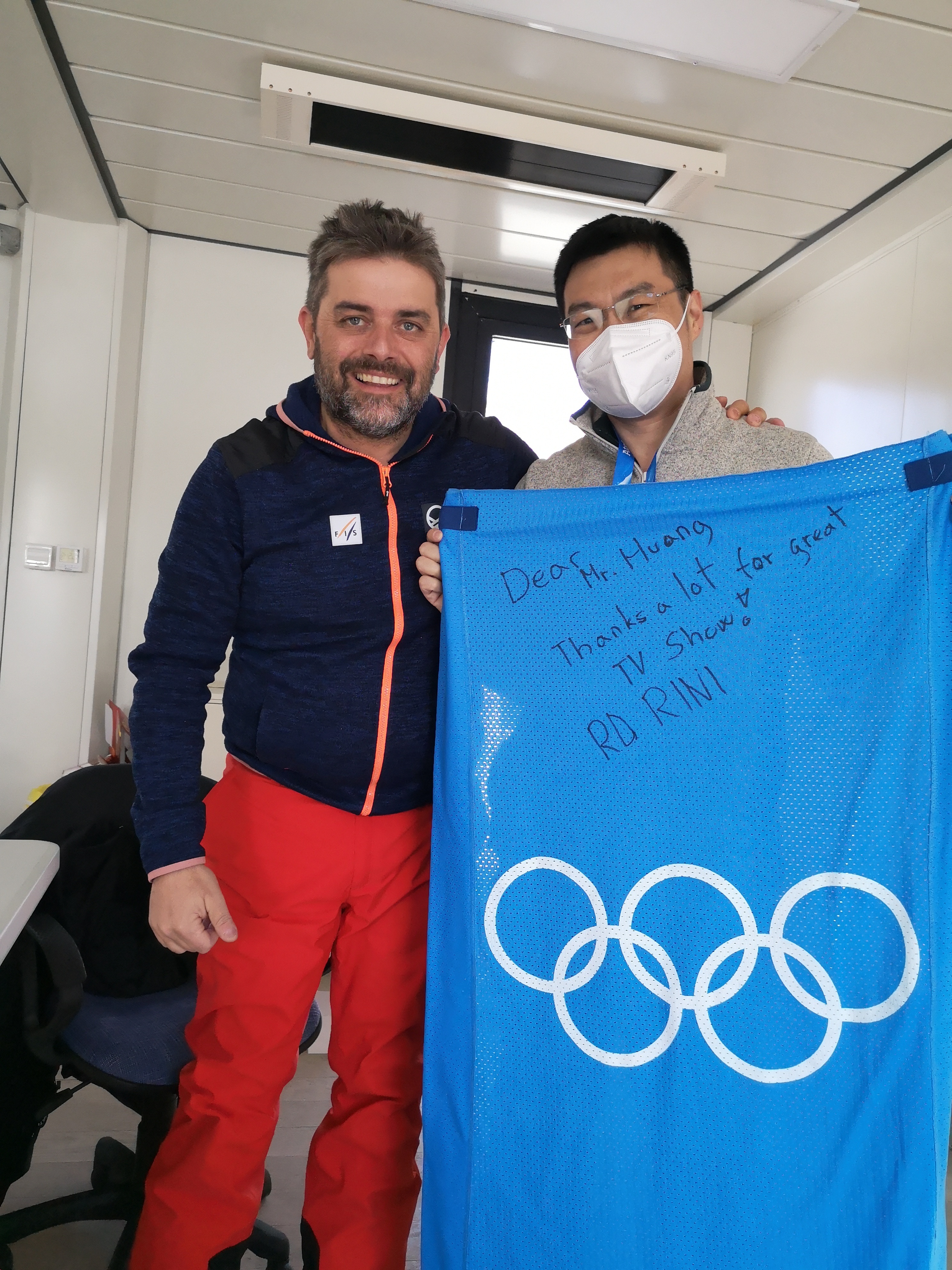 国际雪联在对比相关项目其他团队平昌冬奥会国际公用信号制作之后,对总台团队的卓越表现赞不绝口,国际雪联奥运雪上项目制作总监安德里亚·瑞尼向总台团队送来奥林匹克五环旗,感谢总台付出的努力。