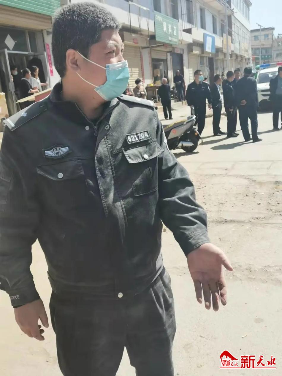 新天水讯【记者蔚军平】4月7日,由于店主疏忽,致使甘谷县大石镇中街一烤鸭店着火,大石派出所民警赵军闻讯后冲进火场切断电源,并将后厨的3个液化气罐转移至安全地带,与同事合力将火扑灭,避免了更大的损失。