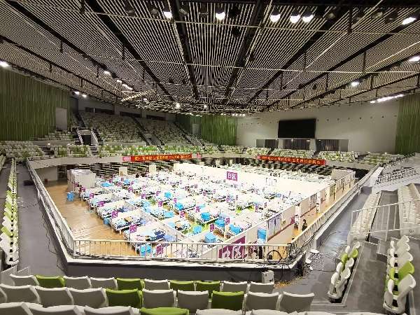据介绍,青浦区方舱医院由中建八局科技建设有限公司第四分公司承担改造任务。3月29日下午,该公司接到援建任务,迅速组织 70 余名管理人员及 500 余名工人奔赴援建现场。区体文中心原建筑体量巨大,系统复杂,为按时保质完成交付,项目团队当天下午进行原建筑情况排摸、场地清理移交和材料进场,连夜完成卫健委、院方和消防等各部门方案评审,次日凌晨完成图纸设计。