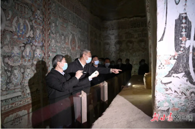 4月7日至8日,省委书记、省人大常委会主任尹弘在敦煌研究院和榆林窟调研时强调,要深入学习贯彻习近平总书记在敦煌研究院座谈时的重要讲话精神,紧盯总书记提出的“努力把研究院建设成为世界文化遗产保护的典范和敦煌学研究的高地”目标要求,持续挖掘敦煌文化价值内涵,加强学术研究交流,创新内容形式,推动成果共享,增进对敦煌文化的共鸣和认同,激发坚定文化自信的持久力量。