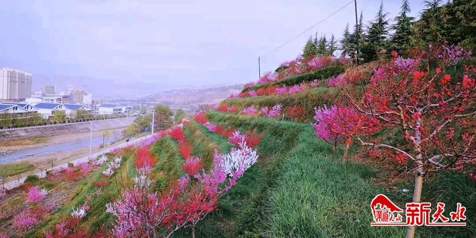 新天水讯【通讯员 刘清宁 马尧 杨蓉奎】醉美人间四月天,走进清水县花舞北山,碧桃、丁香等各种花卉花开正浓,在蓝天白云的映衬下,形成一幅乱花渐欲迷人眼的美景。