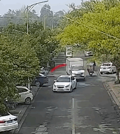 河对面一辆白色小轿车冲进了河里”
