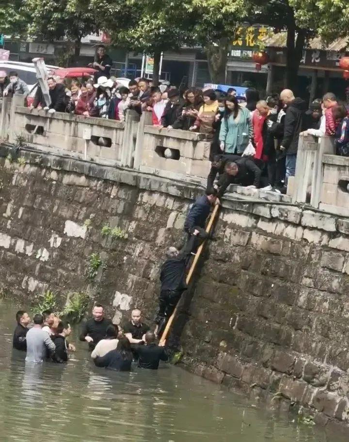 多位路人“下饺子式”跳入河中
