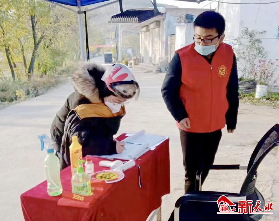 赵琪良是一名正在苟家岘村挂职锻炼的选调生。疫情形势发生变化后,一接到乡政府通知,赵琪良便第一时间与村委班子搭建疫情防控执勤站点,起草劝导标语,并主动要求参与疫情防控站点的通宵执勤工作。除了苟家岘村疫情防控站点,人流量大、车流量多的甘谷县G310东三十里铺县际交通检疫点也是他坚持抗疫的“战场”,每个站点三班倒,两个“阵地”来回换成了他的防疫工作日常。