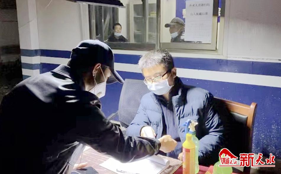 “老乡从哪儿来的呀?健康码和核酸检测证明打开我看看!”“来来,再测个体温登记一下。”……夜色深沉,位于甘谷县白家湾乡苟家岘村疫情防控站点上彻夜长明的一盏灯光,既是守护村民健康安全的“信号灯”,也成为深夜归家人的“指路灯”,正在值守的赵琪良已经记不清这是多少次充当苟家岘村疫情防控点的“守夜人”,但他清楚地知道,作为白家湾乡入口的第一道关卡,苟家岘村卡点是全乡抗击疫情的前哨,防疫任务艰巨,丝毫不容懈怠。