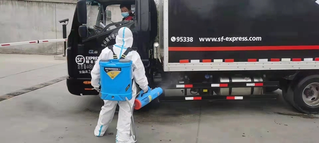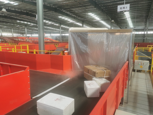 在顺丰快递天水中转站内,所有进出中转站的人员和车辆都有专人查验两码(健康码、出行码)和核酸检测报告,每一辆邮车到达指定位置后,工作人员立即对车身进行全面的消毒。随后,从车上卸下的包裹首先在传送带上完成第一次消毒。快递经分拣后,又被送到一间单独的消毒室内,进行六面无死角消毒。