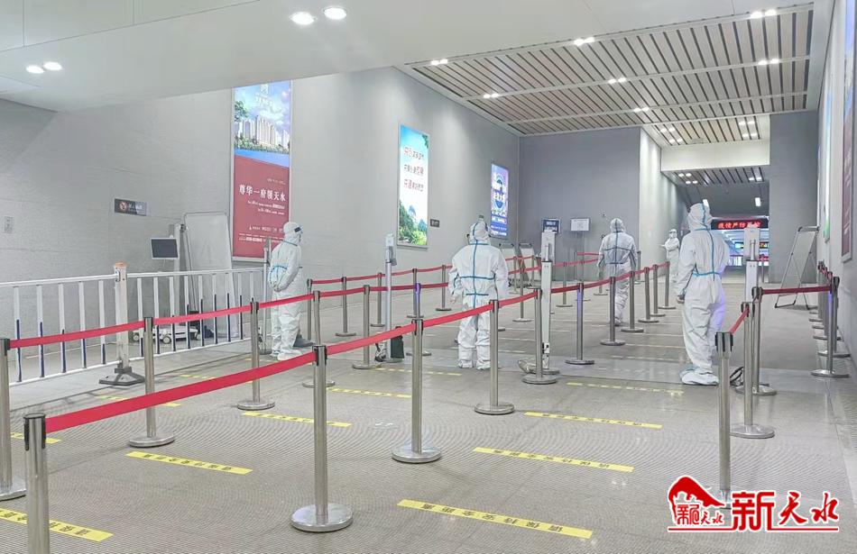 在天水火车站出站口,天水火车站交通检疫组认真落实各项疫情防控措施,进一步加强来天返天人员疫情防控闭环管理。