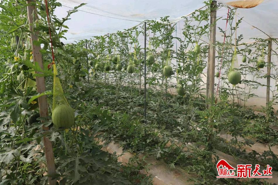 新天水讯【通讯员 闫君兰 管秋勇】日前,笔者在武山县山丹镇周庄村西瓜产业园区大棚里看到,一个个滚圆的西瓜顺着瓜蔓倒挂在铁丝网上,即将采摘上市。周庄西瓜是国家A级绿色食品,是山丹镇周庄村的支柱产业,以皮薄、味甜、色泽好、口感佳的优势,在武山乃至周边各市县农贸市场、超市占据着一席之地。