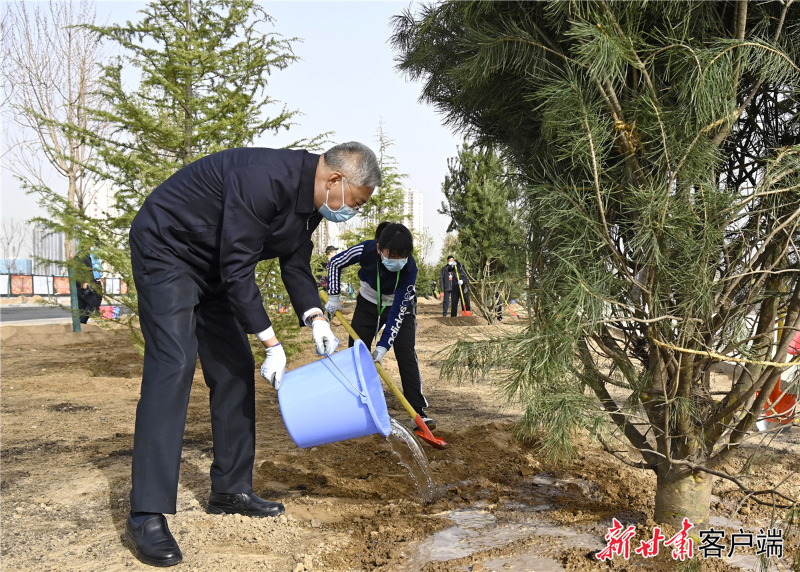 陇原四月春色正浓,黄河两岸绿意盎然。尹弘等领导同志来到位于黄河岸边的植树点,几人一组、分工协作,挥锹铲土、提水浇灌,接连种下了白皮松、雪松、国槐、西府海棠、紫叶李、五角枫等苗木。一株株挺拔的新树苗错落有致、生机勃勃,为黄河之滨增添了新绿。尹弘一边植树,一边询问树苗品种、生长特征,了解全省植树造林等工作进展情况。他指出,植树造林、改善生态,功在当代、利在千秋。党的十八大以来,以习近平同志为核心的党中央高度重视生态文明建设,习近平总书记多次亲自参加义务植树活动,为我们指明了方向、作出了示范。全省各级各部门要牢固树立绿水青山就是金山银山理念,扎实开展全民义务植树活动,不断改善生态环境质量,让陇原大地天更蓝、地更绿、水更清。
