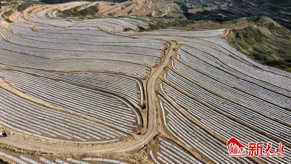 新天水讯 田间保墒抢覆膜,地头播种点籽忙。走进清水县黄门镇,一眼望去,已铺好的地膜格外“耀眼”。粮食功能区示范带建设现场,各种农机具来回穿梭,发出阵阵轰鸣声,一片片农田披上了“银装”,在阳光的照耀下熠熠生辉。