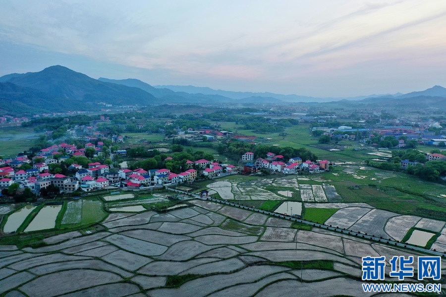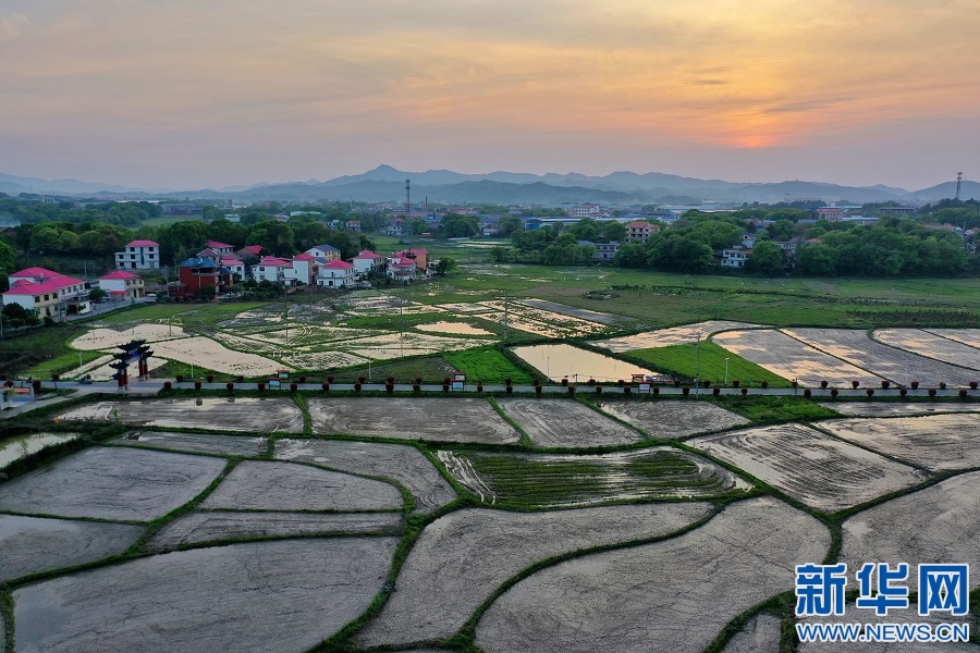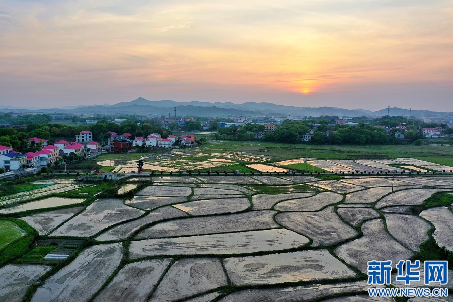 近日,航拍江西省萍乡市芦溪县芦溪镇潭田村,田园色彩斑斓,翻耕后的稻田蓄水后,像一面面镜子。新华网发 王强 摄