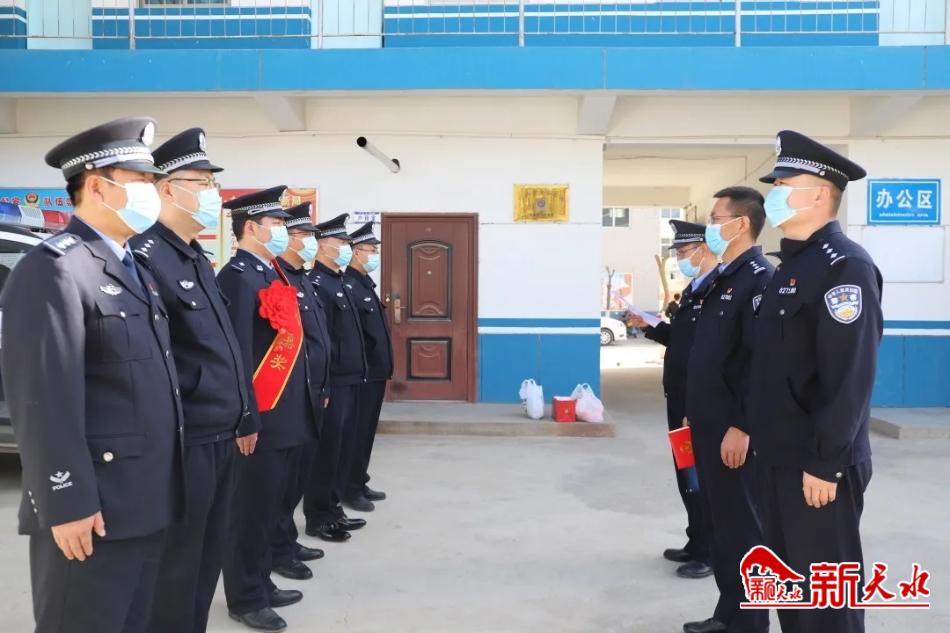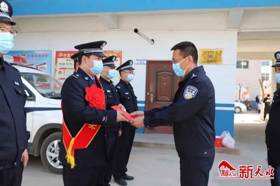 新天水讯【记者蔚军平】为进一步凝聚警心、激励斗志,充分发挥先进典型的示范引领作用,4月7日下午,甘谷县副县长、公安局局长张涛带着慰问品来到大石派出所,为奋不顾身冲入火场灭火的赵军送奖上门,并颁发嘉奖证书。