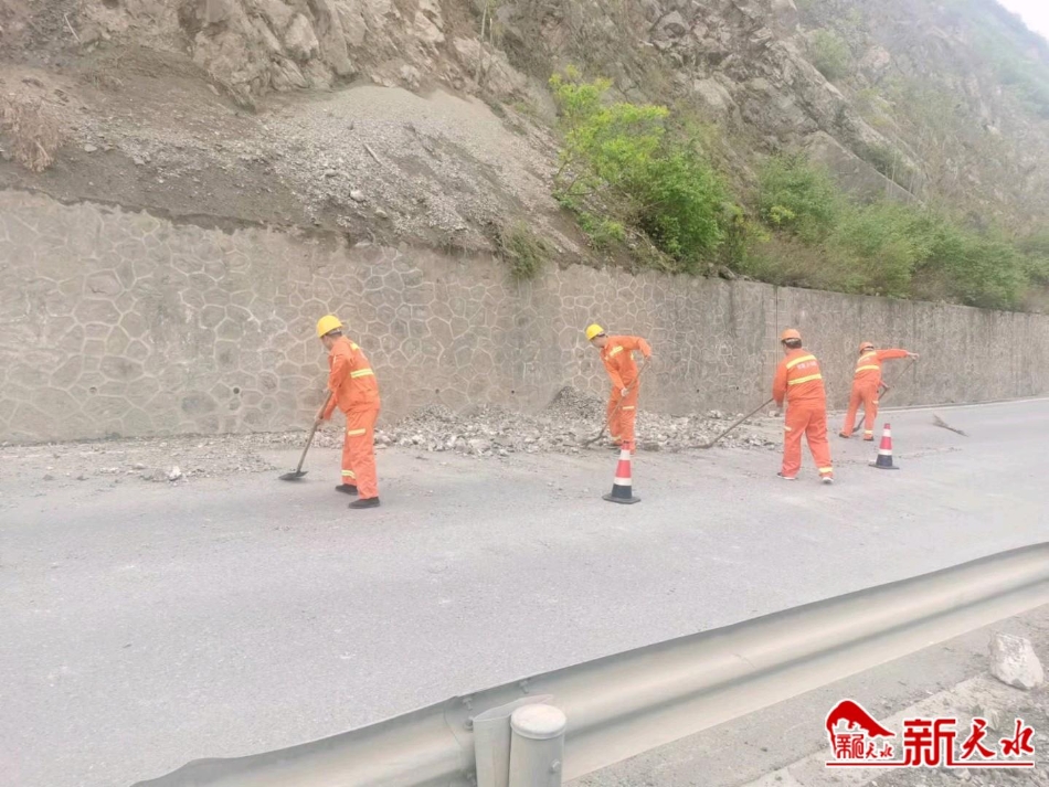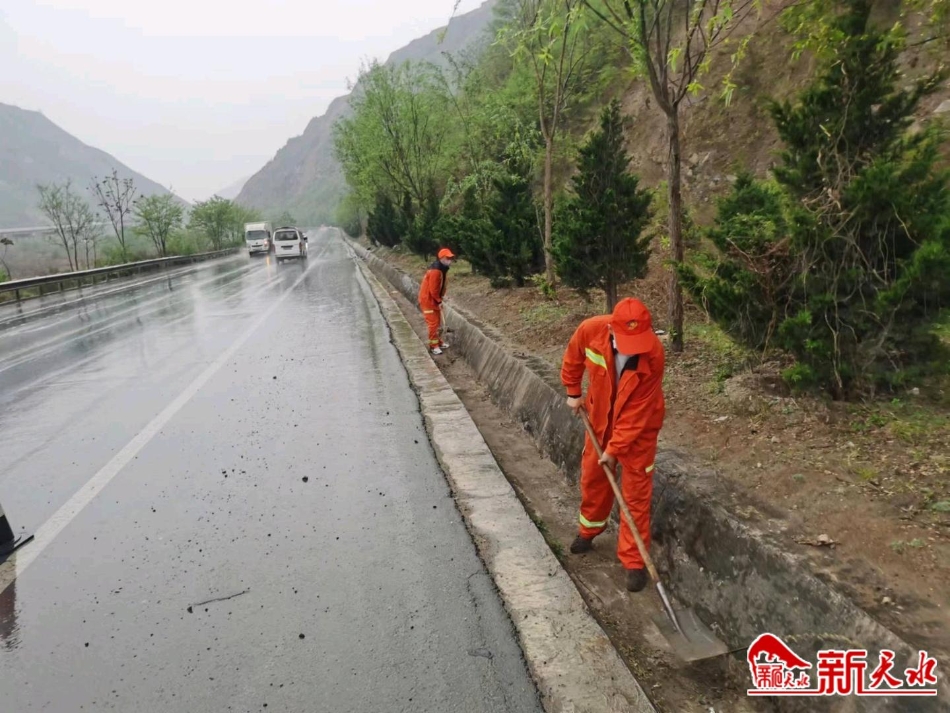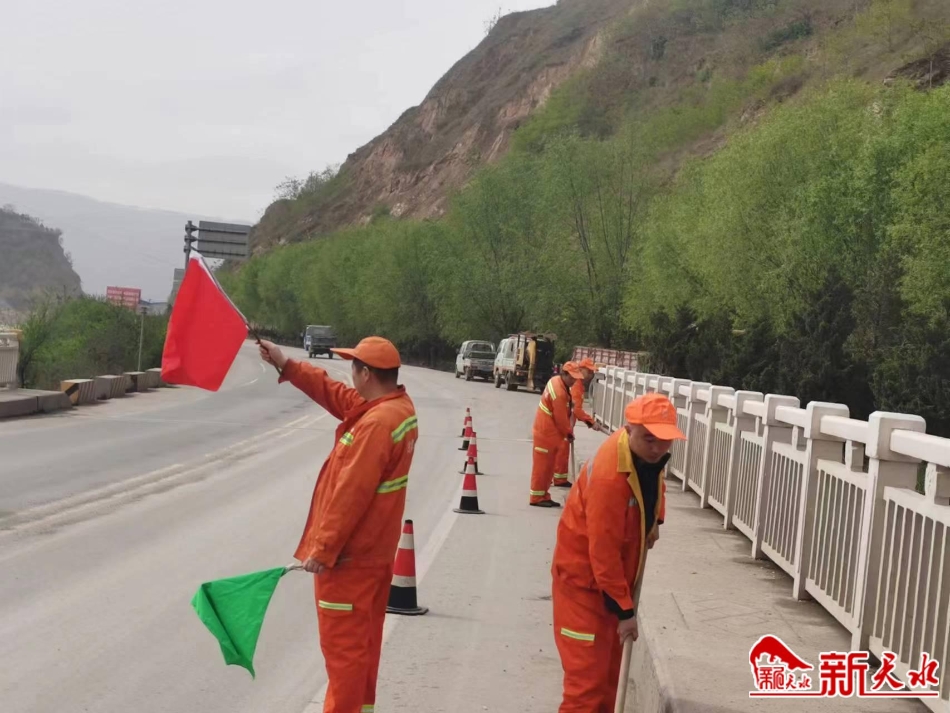 麦积公路段结合养护实际,加大路面清扫力度,对村镇路段、桥梁两端以及隧道出入口的垃圾与杂物进行全面清理,确保辖养公路干净整洁;对所辖路段沿线标志标牌、波型护栏等设施进行排查,并及时修复缺损的交安设施,确保公路沿线标志完整,保障出行安全;及时做好汛期前期准备工作,重点对辖养路段涵洞淤塞、桥梁伸缩缝、泄水孔及公路边沟等进行疏通,防止因边沟堵塞影响路面和路基排水。