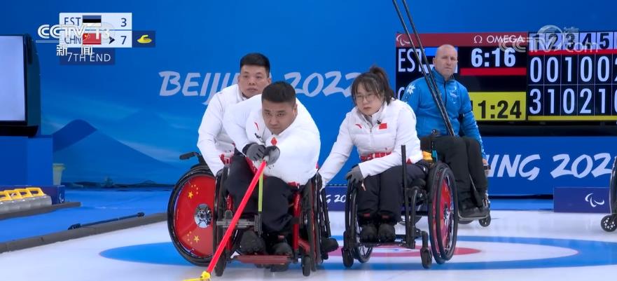 3月12日,北京冬残奥会轮椅冰壶决赛,中国轮椅冰壶队以8:3大比分战胜瑞典队,主教练岳清爽第一时间冲上冰面,和队员们拥抱在一起。五星红旗在“冰立方”舞动,中国轮椅冰壶队队员们连续两届冬残奥会登上最高领奖台。