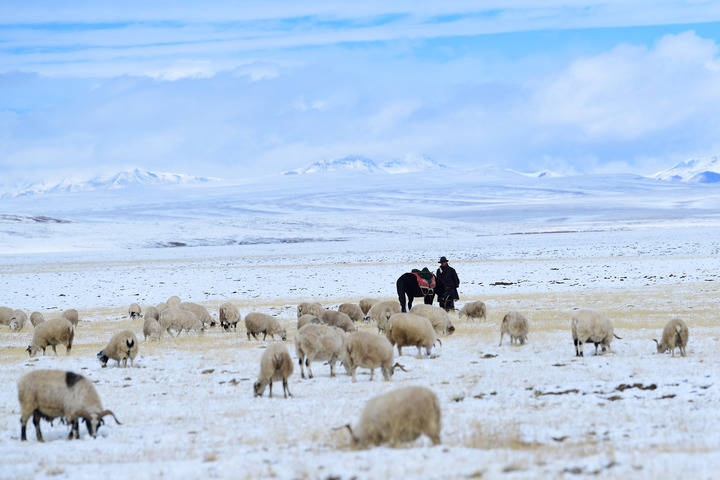 2021年10月,牧民在三江源国家公园黄河源园区放牧。新华社记者张龙摄