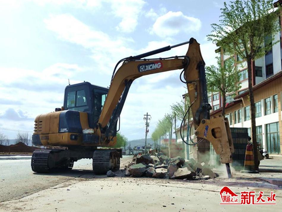 新天水讯 连日来,在国道247线天水镇庙坪村—天水新村—焦李村段你会看到,破拆机正在破碎路边的水泥板,铲车正在清理马路两边的杂物,工人们正在有条不紊铺设人行道,一段段整洁漂亮的人行道在他们身后延伸,原来这是天水镇正在打造的一条美丽乡村示范路。