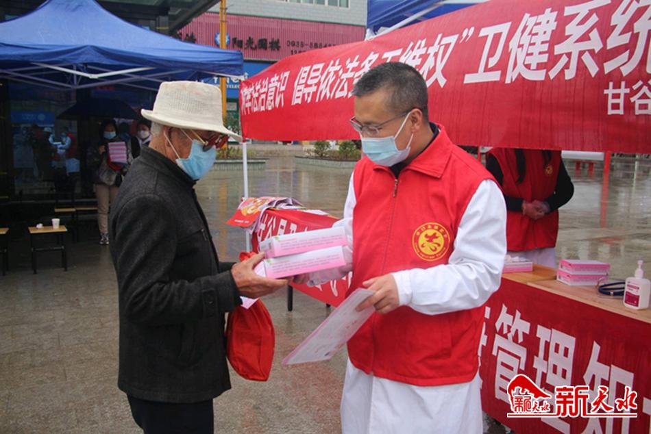 新天水讯【通讯员 王峡弟】为进一步提升农民工法治观念,增强农民工依法务工的意识和能力,推动农民工平等享受城市公共服务,营造全社会关爱农民工尊重农民工的良好氛围,4月15日上午,甘谷县卫健局联合县妇保院在大十字广场,组织开展了“树牢法治意识·倡导依法务工维权·卫健系统在行动”暨新时代文明实践志愿服务宣传活动。