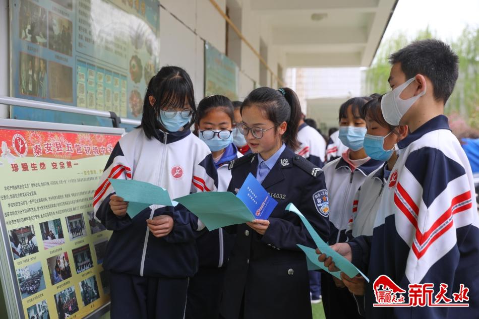 新天水讯【记者张彬霞】4月14日,秦安县公安局交警大队联合五营、陇城、刘坪、云山等派出所,组织民警种走进校园多形式开展全民国家安全教育日宣传活动。