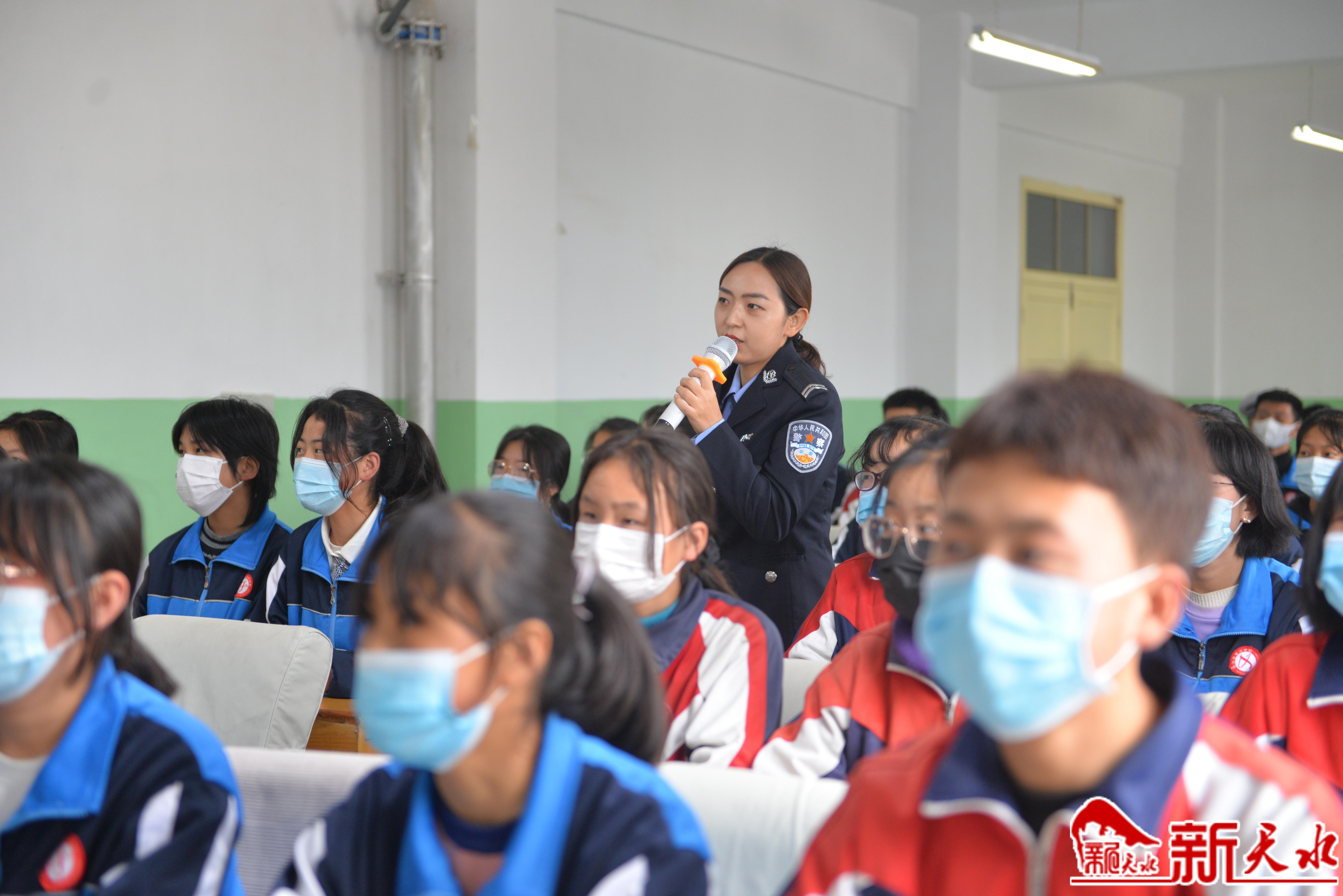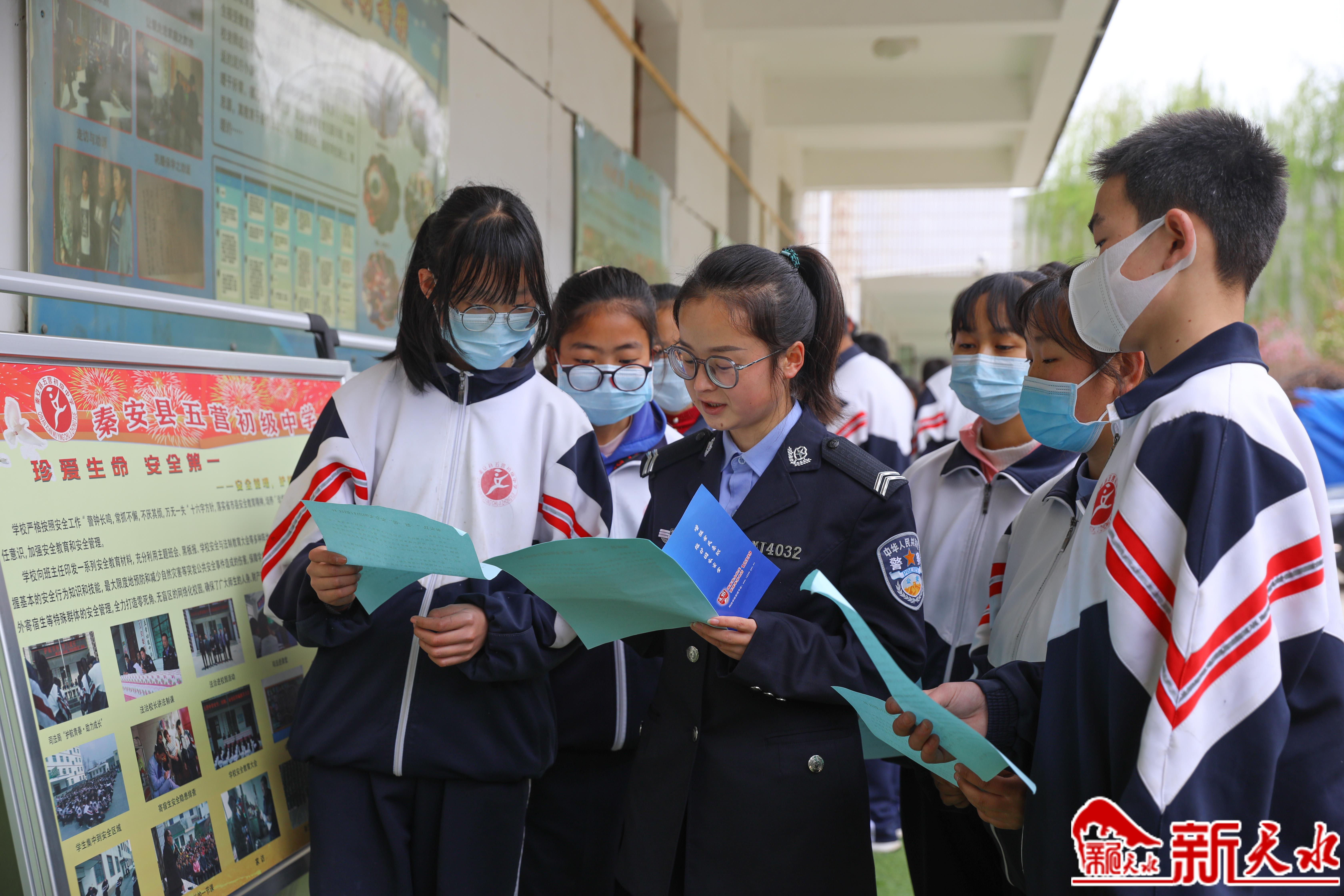 新天水讯【记者余碧波】为深入推进道路交通安全教育宣传工作,强化农村地区学校道路交通安全责任意识,不断提升师生的交通安全意识、文明守法意识,4月14日,秦安县公安局交警大队在 “全民国家安全教育日”来临之际,积极组织民警走进辖区蔡河学校、五营中学、陇城教育园区,按照疫情防控要求有序开展“国家安全教育日”宣传进校园活动。