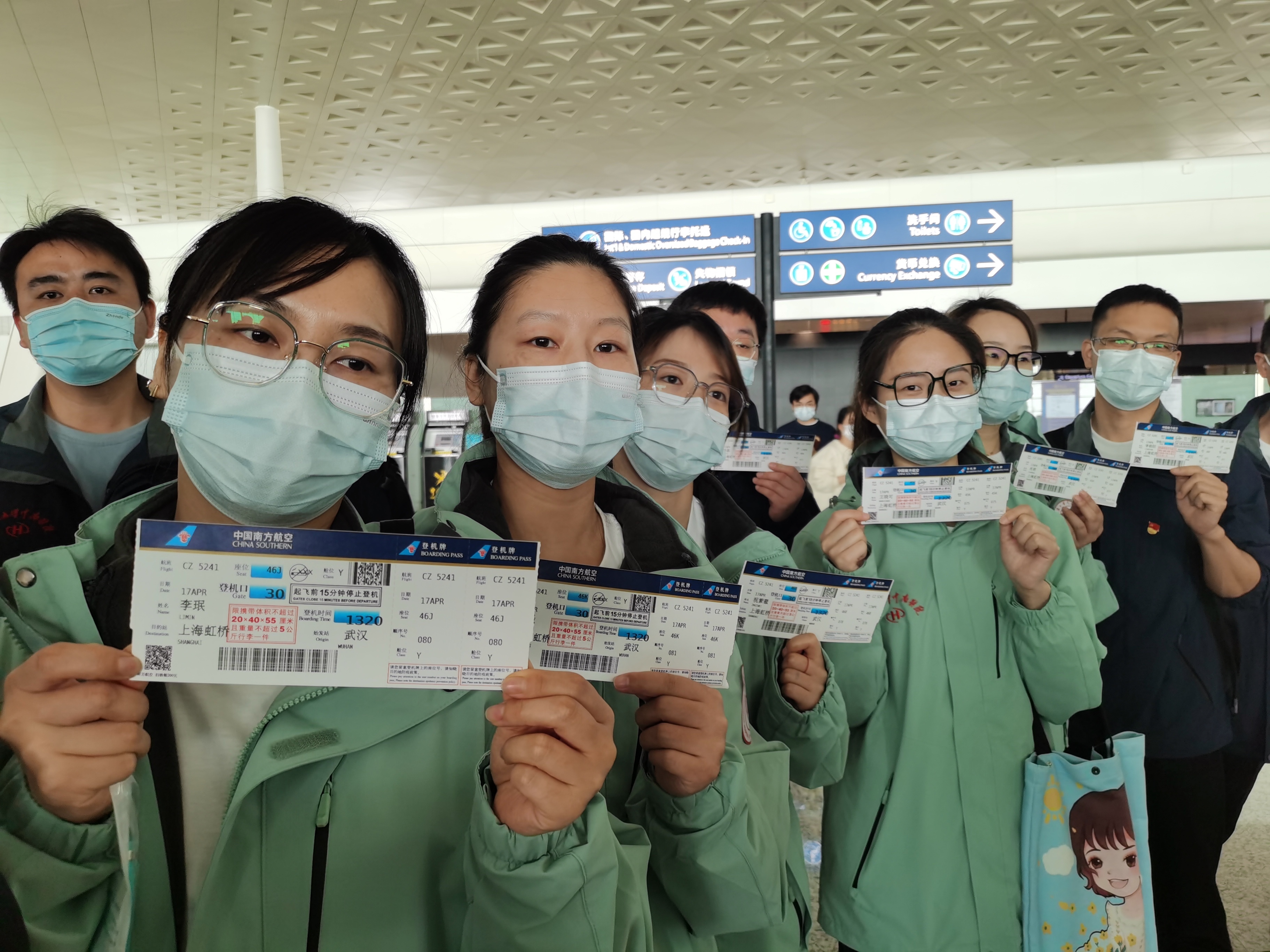 图为4月17日,武汉大学中南医院派出20名医护人员组成第二批援沪医疗队。(供图:高翔 李晗)