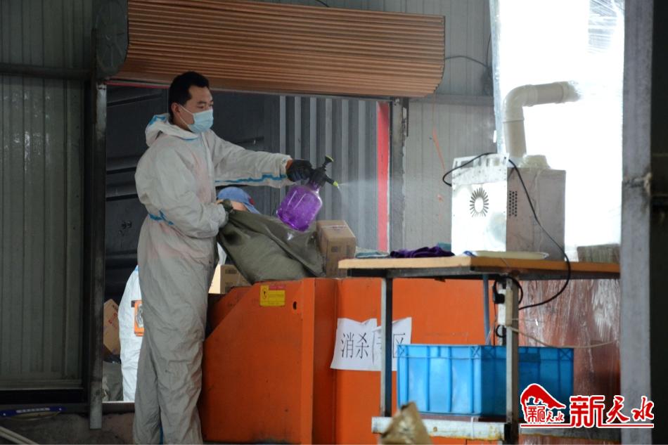 随后,记者又来到一家快递天水分拣中心,看到一辆快递运输车正缓缓驶入院内,待车辆停放好后,防疫工作人员立即对其进行消毒处理,还对车内快递进行整体消杀。随后,这辆车进入分拣仓,车厢内的包裹在通过传输带转运时,进行了二次消毒。