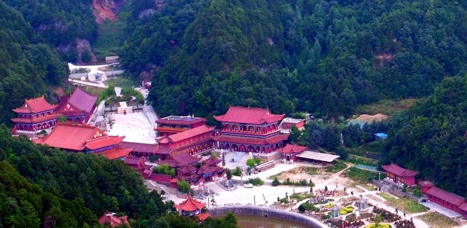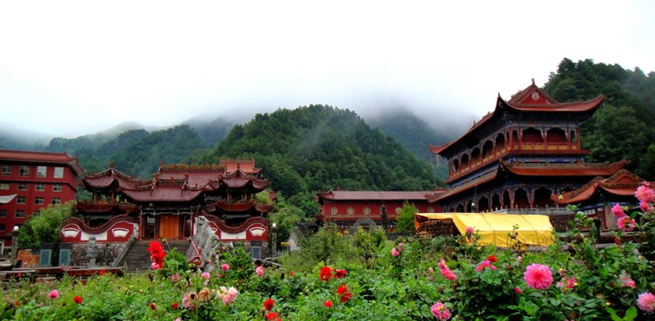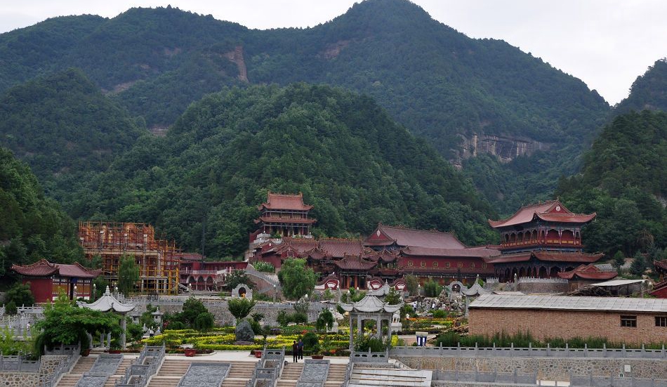 放眼望去,群峰虽多,却各不相同,或如宝塔,或似乳峰,交叠错落,在谷底彼此穿插,一座座恢宏的佛教建筑,隐匿在连峰的腰际线上,左移几步,可见飞檐流云;右进半丈,只有松涛低吟。