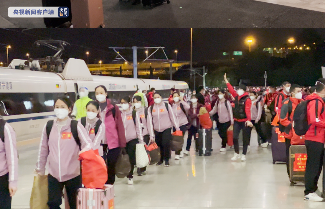 4月18日21时18分,由南宁方向开出的首趟援沪列车G1502次抵达上海虹桥站,车上700余名广西援沪医务人员和医疗物资将根据相关部门安排驰援上海抗疫一线。