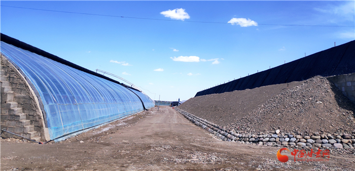 中以(酒泉)绿色生态产业园温室大棚的构造亦有戈壁特色。戈壁飞沙走石荒凉无比,但是沙石不愁,当地将开挖管道的沙石全部堆到温室后墙,起到加固和防风作用。