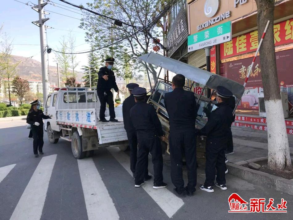 新天水讯 4月20日,武山县城市管理行政执法局多措并举开展城区流动摊点专项整治行动,深化城区“八乱”精细化管理,全力维护市容环境秩序,进一步提升城市形象品位。