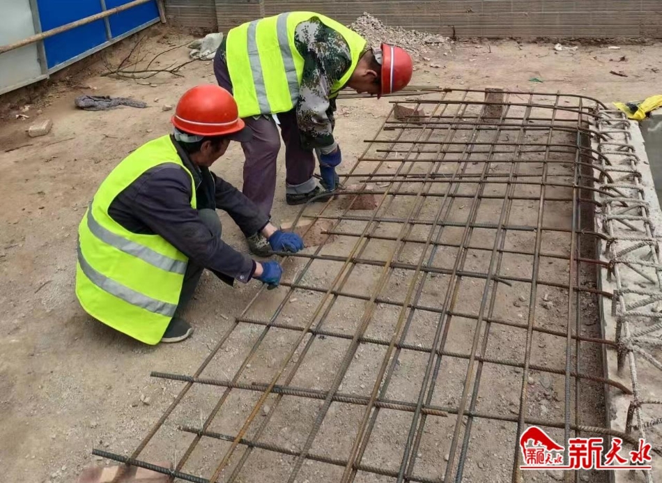 新天水讯【记者蔚军平】4月21日上午,在秦州区赤峪路华天电子产业园片区人行天桥建设工程施工现场,施工人员在吊装好的钢结构主梁下面进行人行梯道基座预埋作业,为下一步安装人行梯道以及自动扶梯作好准备。