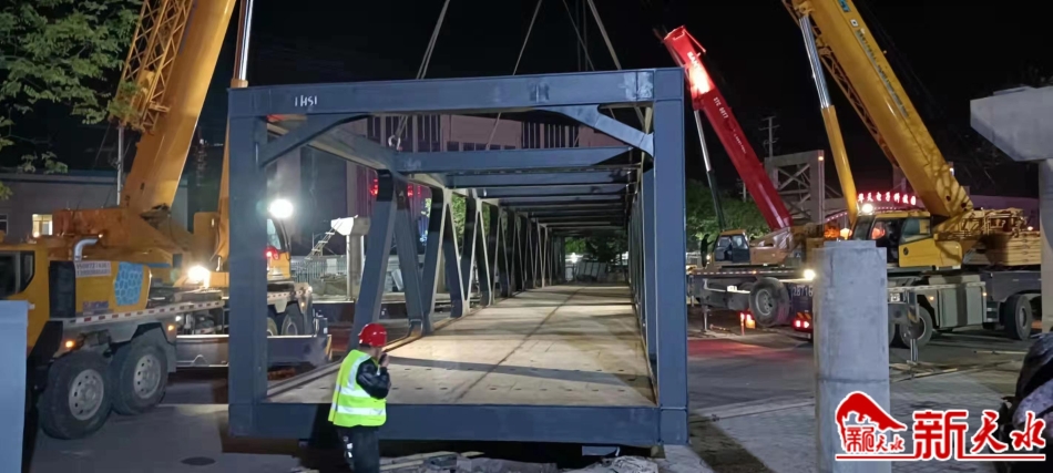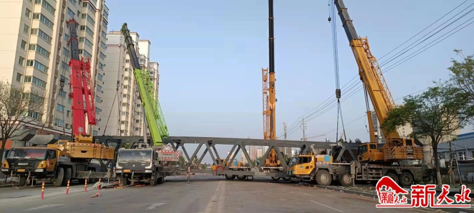 秦州区赤峪路华天电子产业园片区人行天桥完成钢结构主梁吊装