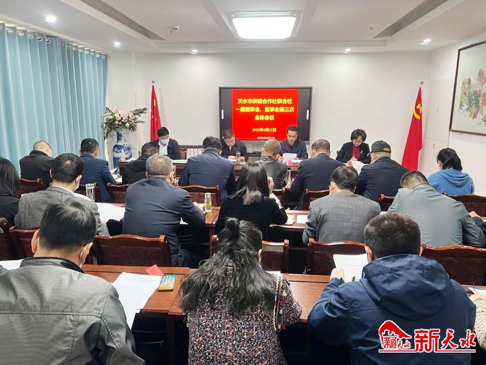 新天水讯【通讯员 白雪】4月21日,天水市供销社召开第一届理事会、监事会第三次全体会议,总结回顾2021年全市供销系统工作,通报了一季度经济运行情况,安排部署了2022年重点工作。