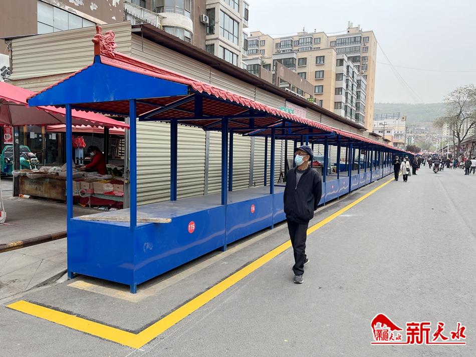 “原先的红帐篷,换成了固定的交易柜台,一眼望去,整个市场干净整齐多了。”近日,记者在秦州区坚家河市场采访时,一位老人指着正在安装的仿古交易柜台说。