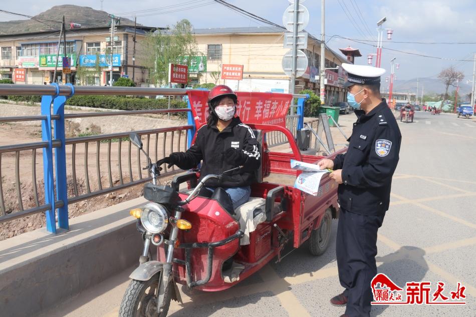 新天水讯【记者何慧娟】如今正是农忙时节,农村地区农用车辆使用频率也相对较高,为维护农村交通安全秩序,保护人民生命财产安全。秦州公安分局郊区交警大队深入太京镇、牡丹镇开展了“美丽乡村行”“一老一少”“一盔一带”交通安全面对面宣传活动。