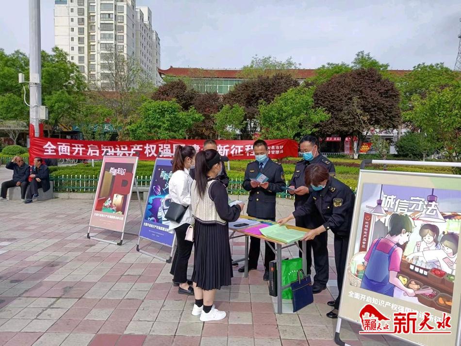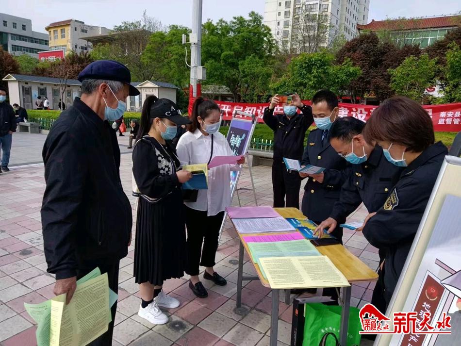 新天水讯【通讯员 王顺芳】 4月26日,秦安县市场监管局联合县检察院等部门在兴国文化广场举行以“全面开启知识产权强国建设新征程”为主题的2022年知识产权宣传周集中宣传活动,进一步加强知识产权保护宣传教育,增强全社会尊重和保护知识产权意识,营造良好的营商环境。