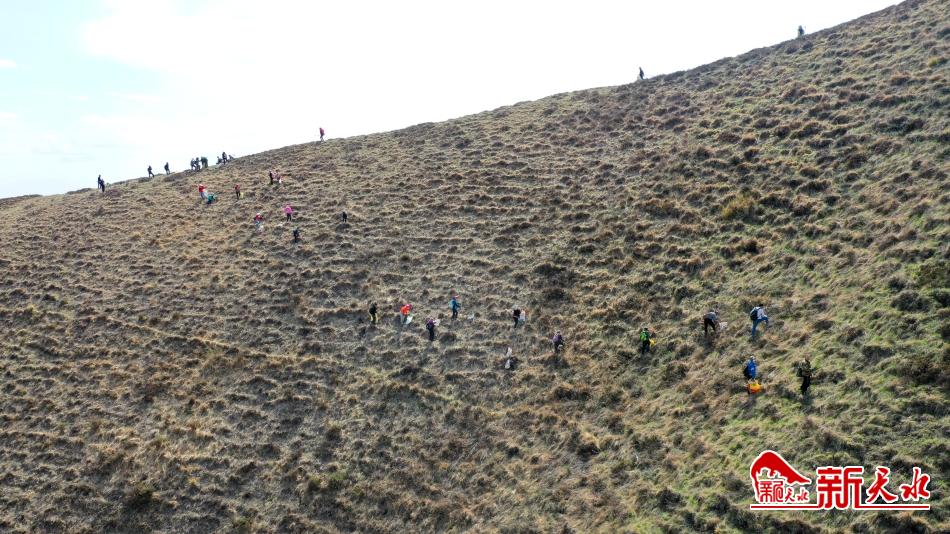 70度的陡坡,没有路,却布满荆棘。林场工人手提肩扛树苗,登上海拔两三千米的植树点。深挖树坑,植树造林。