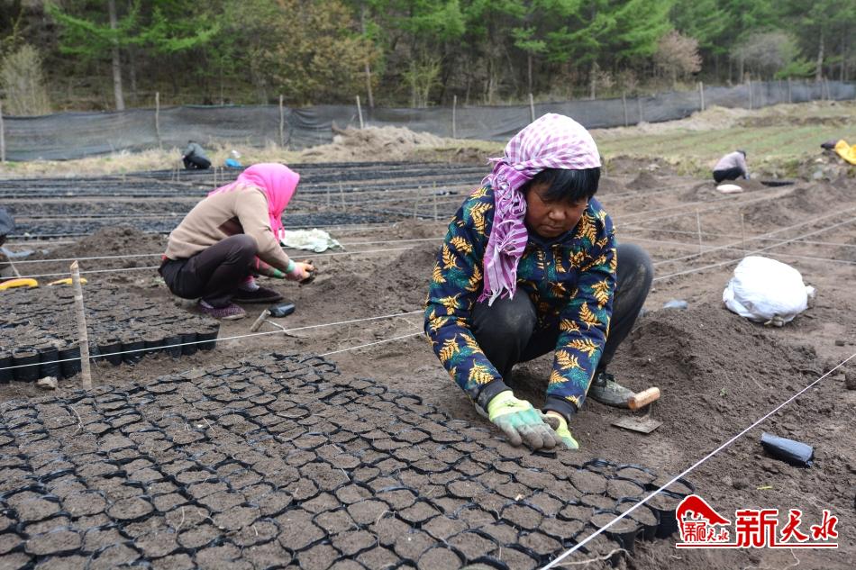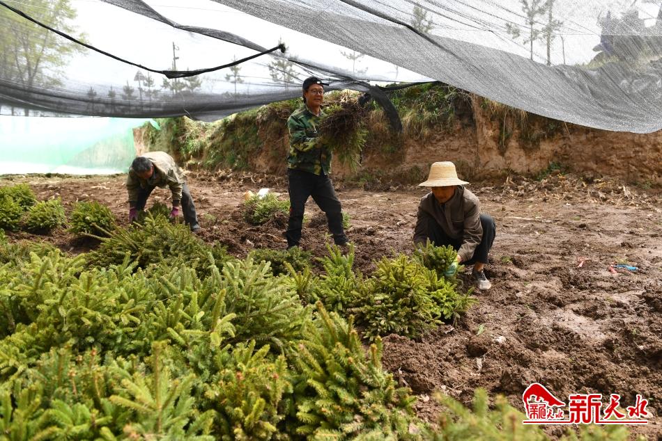 植树育苗相结合,共建绿水青山。4月27日,在甘肃省小陇山林业保护中心黑虎林场育苗基地,工人们正在培育云松树苗,由于当地海拔高、气候寒冷,这些树苗培植三年左右就可用于植树造林。黑虎林场地跨天水市武山县,定西市漳县、岷县。全场经营总面积80.3万亩,林业用地50.7万亩,其中有林地30.4万亩。建场以来,黑虎林场遵循“以营林为基础”和“以林为主,林副结合;培育为主,育用结合;全面经营,永续利用”的方针,实现了有林地面积、活立木蓄积、森林覆盖率三增长。