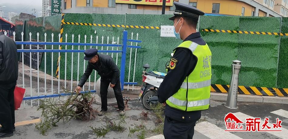 秦州区执法局西关中队整治市场外溢摊点