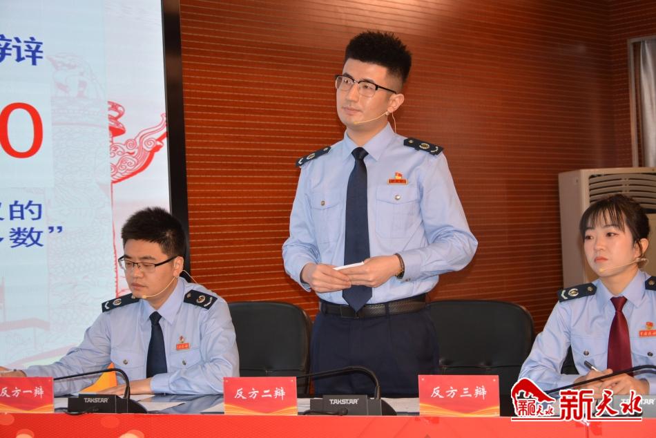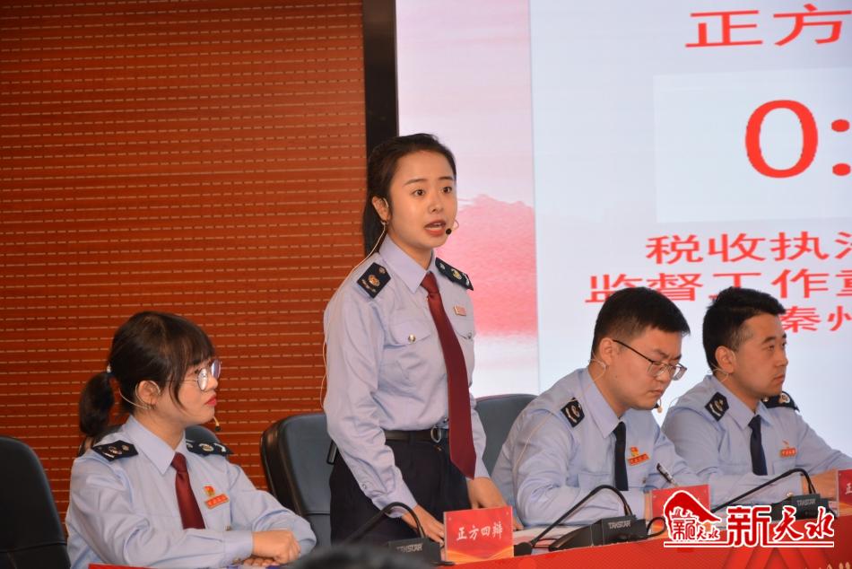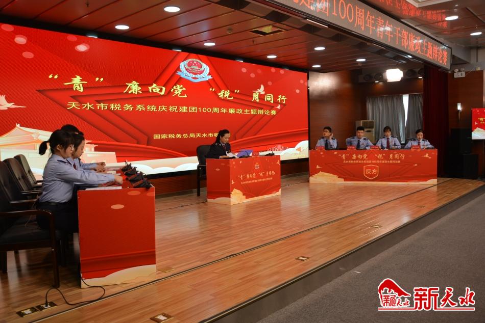 4月28日上午,在国家税总局天水市税务局会议室内,一场激烈的辩论正在进行中,正反辩论双方针对辩题你来我往,开展着唇枪舌战,气氛异常热烈,而辩手们的精彩辩论不时赢得场下听众的阵阵鼓掌。当天是天水市税务系统庆祝建团100周年“‘青’廉向党、‘税’月同行”廉政主题辩论赛的总决赛。