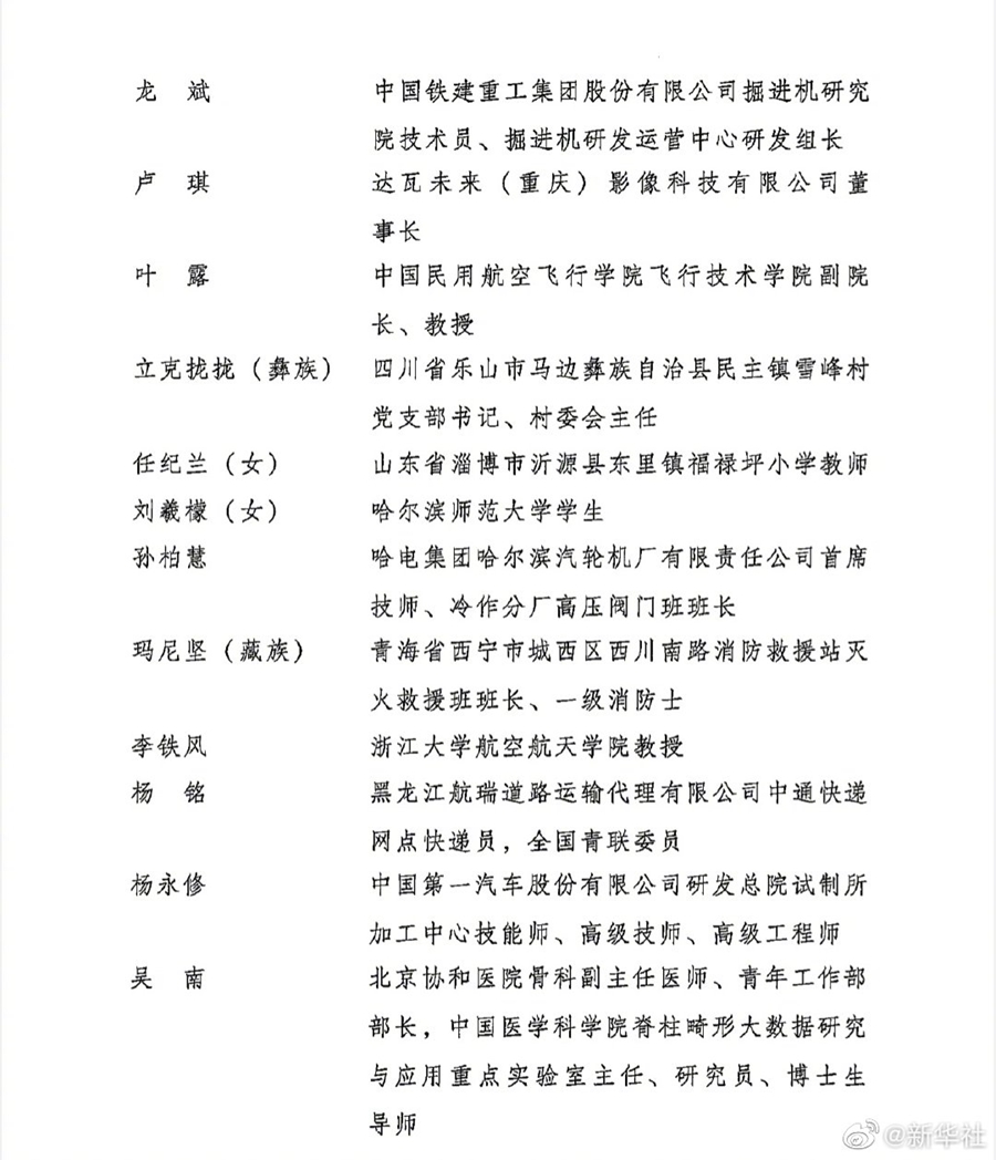第26届“中国青年五四奖章”评选揭晓