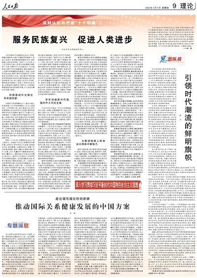 习近平新时代中国特色社会主义思想,明确中国特色大国外交要服务民族复兴、促进人类进步,推动建设新型国际关系,推动构建人类命运共同体。深入学习贯彻习近平新时代中国特色社会主义思想,必须胸怀中华民族伟大复兴战略全局和世界百年未有之大变局,深入贯彻习近平外交思想,牢牢把握我国对外工作服务民族复兴、促进人类进步这条主线,推动建设新型国际关系,推动构建人类命运共同体,为世界和平发展贡献中国智慧、中国方案、中国力量,推动中国特色大国外交不断谱写新篇章。今天刊发的3篇文章,围绕这一主题进行阐述。